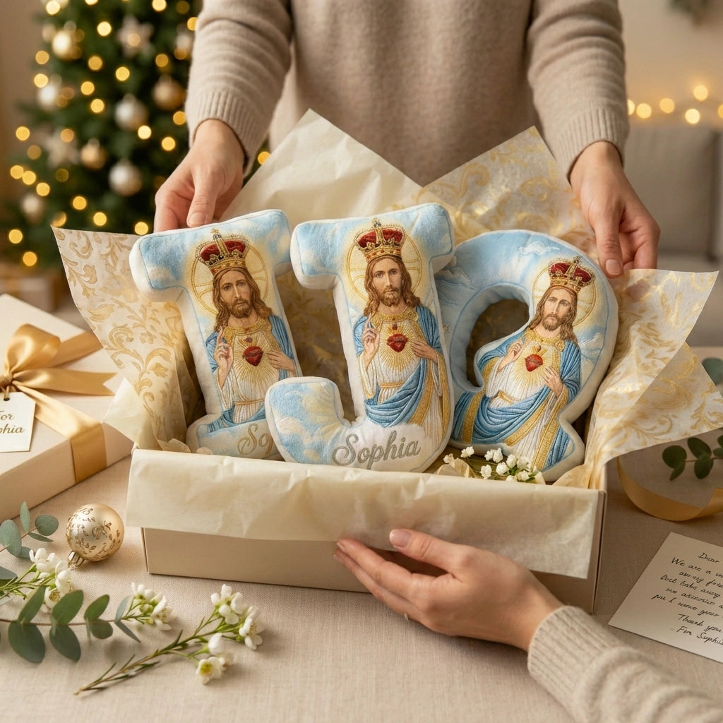 Personalized Jesus Cross Letter Pillow with Custom Name Home Decor Graphic 3D Print Pillow Religious Faith Gift for Christians Jesus Lover Gift