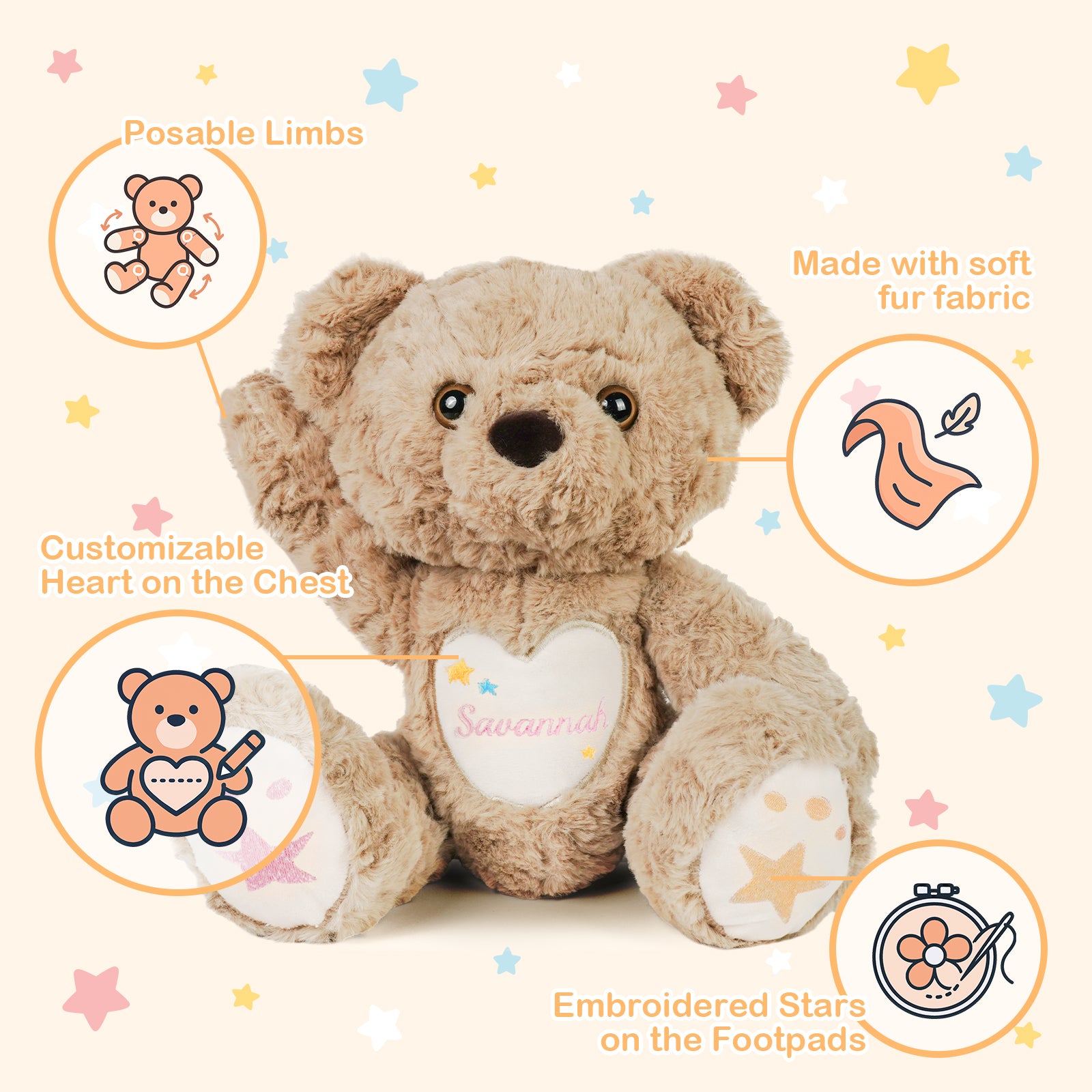 Starlight Teddy Bear 14” - Brown Short Fur - Personalized Gift– CustomizedBee